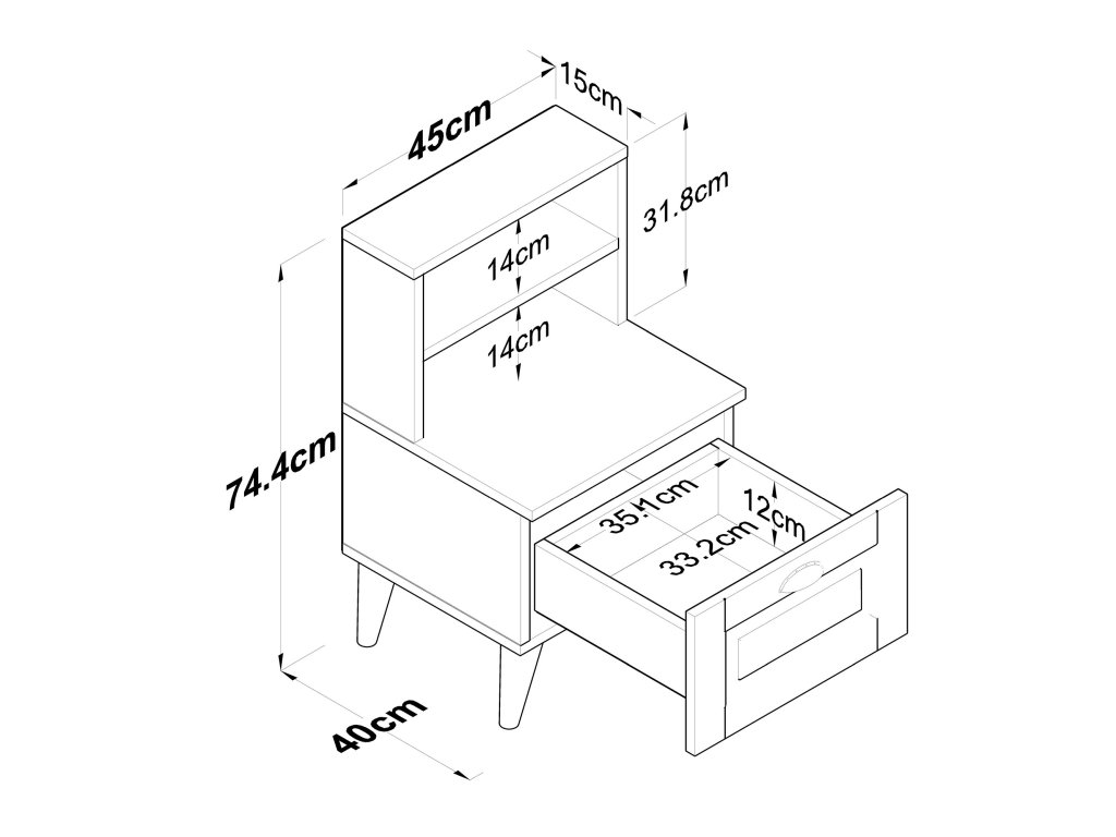 - Rozmery: 74,4 x 45 x 40 cm – ideálna veľkosť pre umiestnenie vedľa postele.