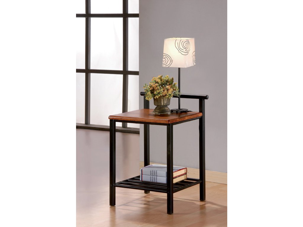 Nočný stolík VD-275 v rustikálnom štýle. Stolík je vytvorený kombináciou čierneho kovu a dreva vo farbe antická čerešňa. Je vybavený praktickou odkladacou poličkou. Rozmer (v/š/h) 57 x 40 x 37 cm. Je vhodný ku kovovým posteliam. Objednávací kód: VER-0321Dodatočné parametre