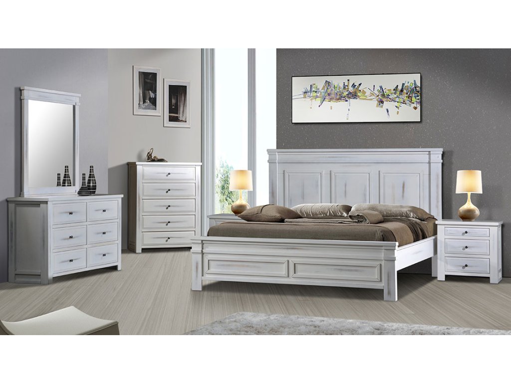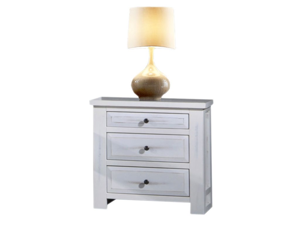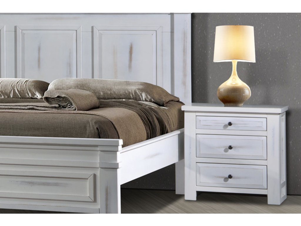 ZAVALA je nočný stolík s čistými líniami v elegantnom farebnom prevedení antická biela. Tento rustikálny nábytok pôsobí masívnym dojmom. Efektný 3D dekór na čielkach násuviek a nenápadné úchyty, dávajú tomuto nábytku výnimočný dizajn. Stolík je vyrobený kombináciou masívu a prírodnej dýhy. Celkový rozmer (š/h/v): 60 x 40 x 60,5 cm. K posteli ponúkame aj posteľ ZAVALA v rovnakom farebnom a dizajnovom prevedení. Nábytok dodávame v demonte. Objednávací kód: VER-0031Dodatočné parametre