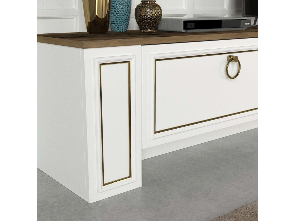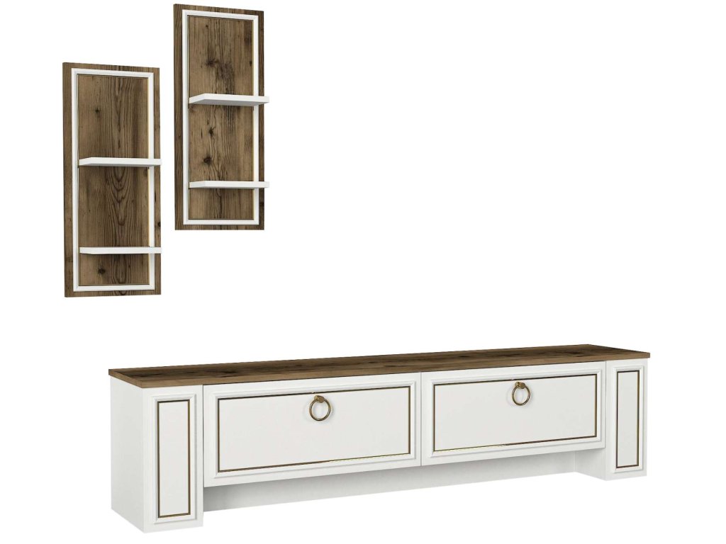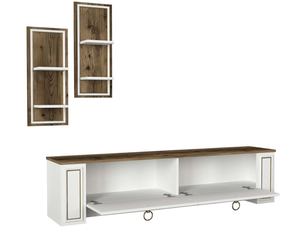 - Zostava obsahuje: Priestranný TV stolík a multifunkčnú nástennú policu, ktoré sú nielen praktické, ale aj vizuálne príťažlivé.