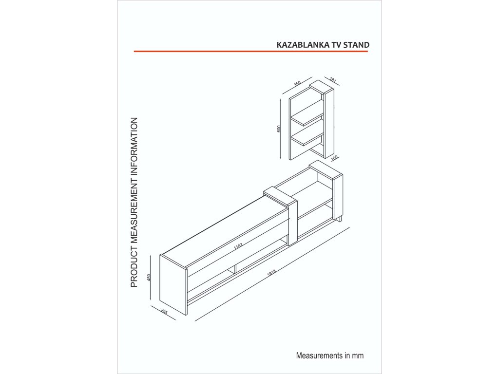 - TV stolík: 182 x 30 x 45 cm