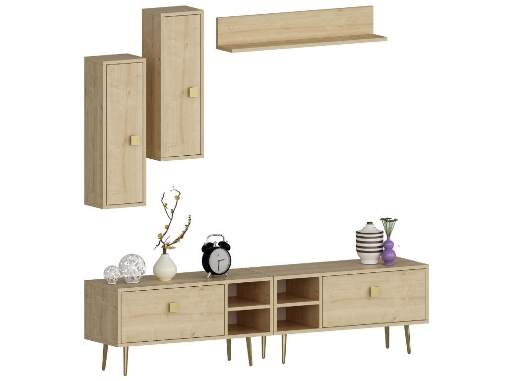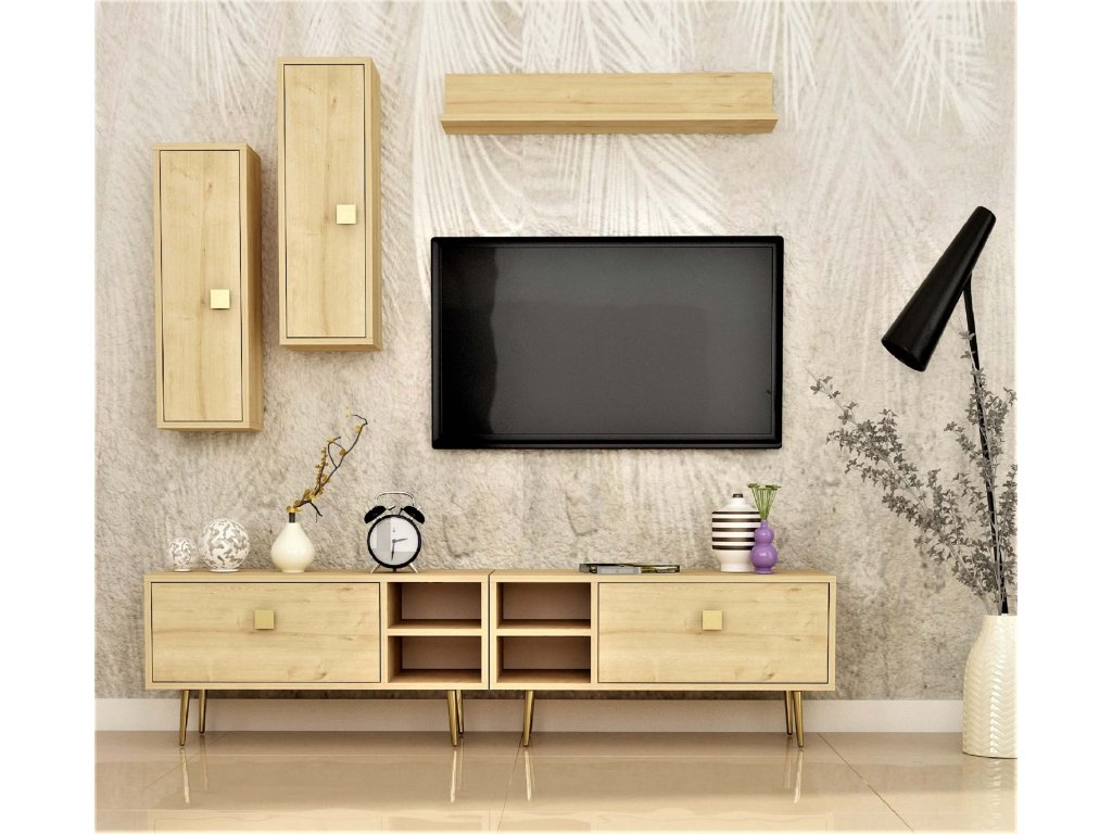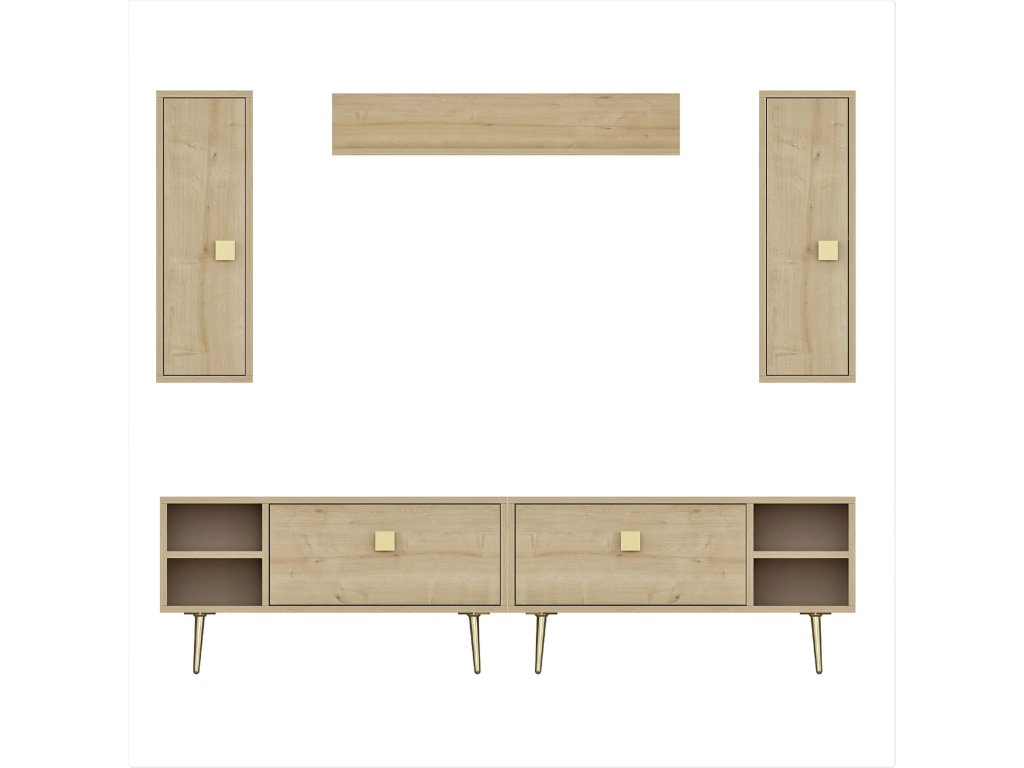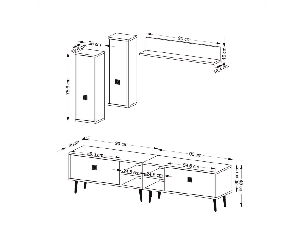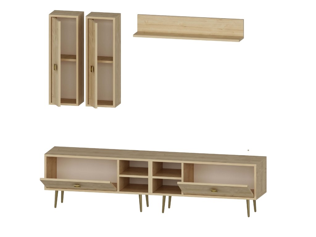- Zostava obsahuje: TV stolík, nástenná polica s dvoma závesnými skrinkami