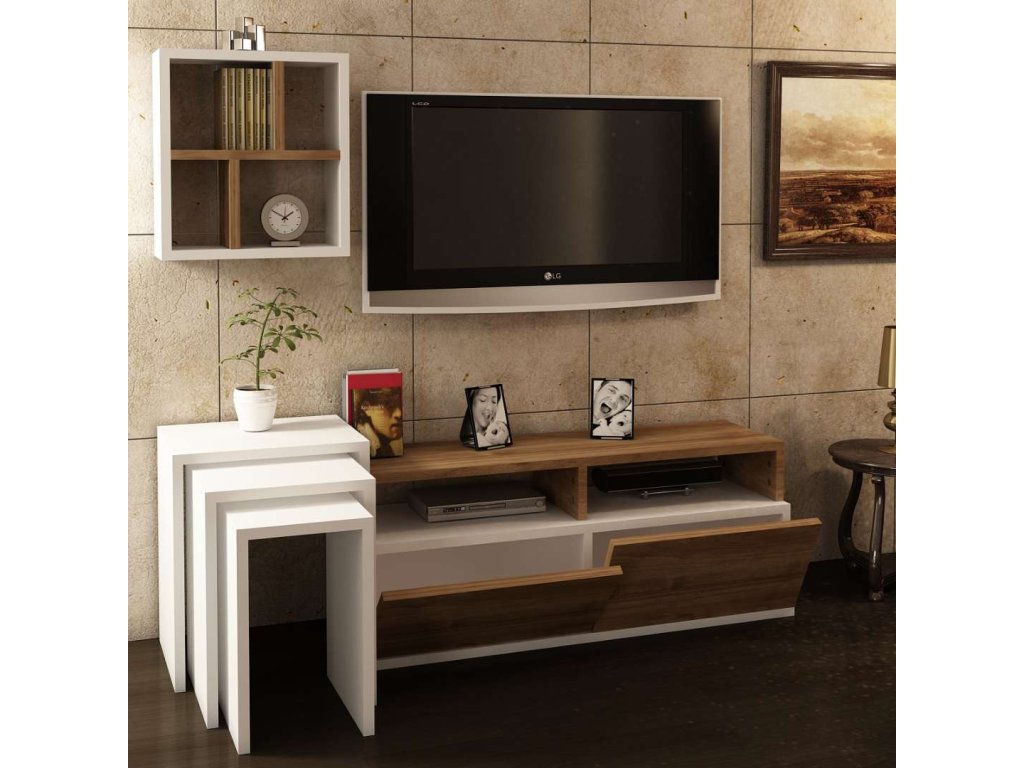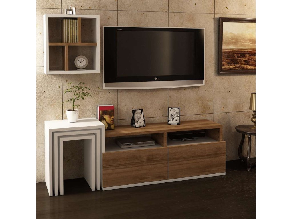 | Zostava obsahuje: | TV stolík š123,2Xh29,5Xv41,8, nástenná polica š35Xh14x5Xv38,6, 2x odkladací stolík |