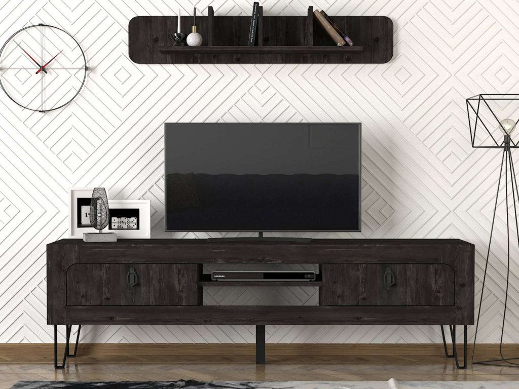 - Vybavenie: Regálka poskytujúca dostatok úložného priestoru pre elektroniku, knihy alebo dekorácie.