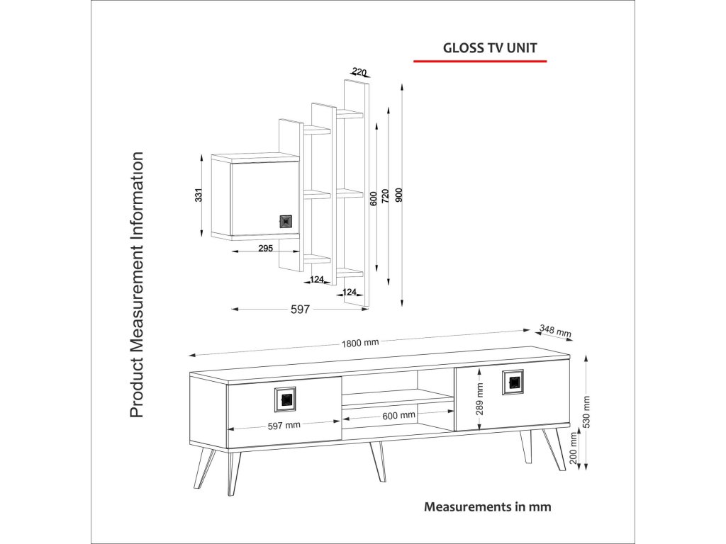 | Zostava obsahuje: | TV stolík š180Xh35Xv53, nástenná polica š60Xh22Xv90 |
