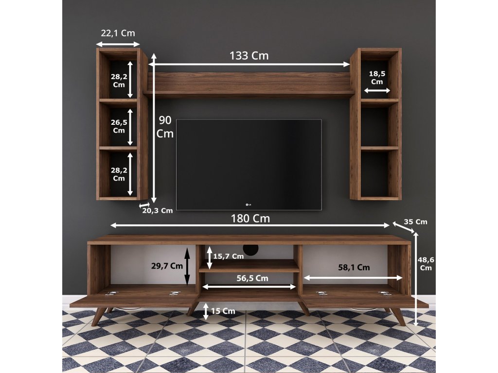 - Rozmery: 48,6 x 180 x 35 cm – ideálna veľkosť pre modernú obývaciu izbu.