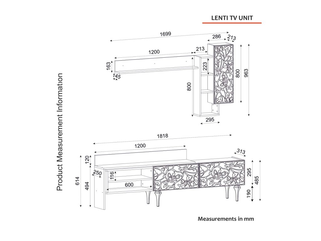 | Zostava obsahuje: | TV stolík š182Xh31,3Xv61,4, horný modul š170Xh20Xv80 |