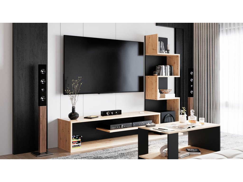 Obývacia stena MAMBA, dub Artisan / čierna