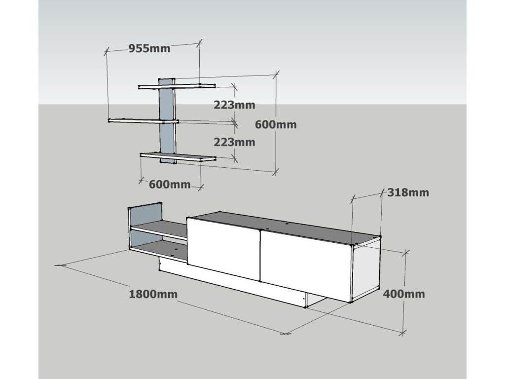 | Zostava obsahuje: | TV stolík 180x31,8x40cm, nástenná polica 95,5x16x60cm |