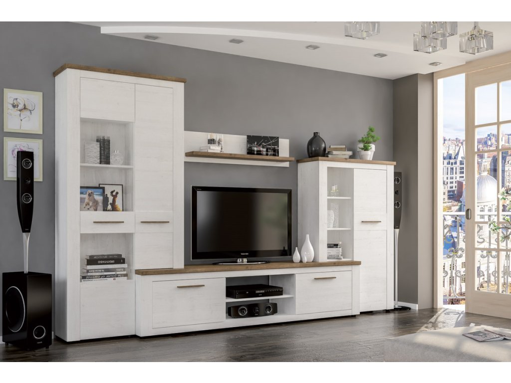 Je vhodná do moderných obývacích priestorov. Zaujme aj náročnejších zákazníkov. Zostava je vyrobená z kvalitných LTD dosiek, ktoré sa ľahko udržujú. Je vo farebnom prevedení: borovica andersen, dub april. Obývacia stena sa predáva iba ako zostava.