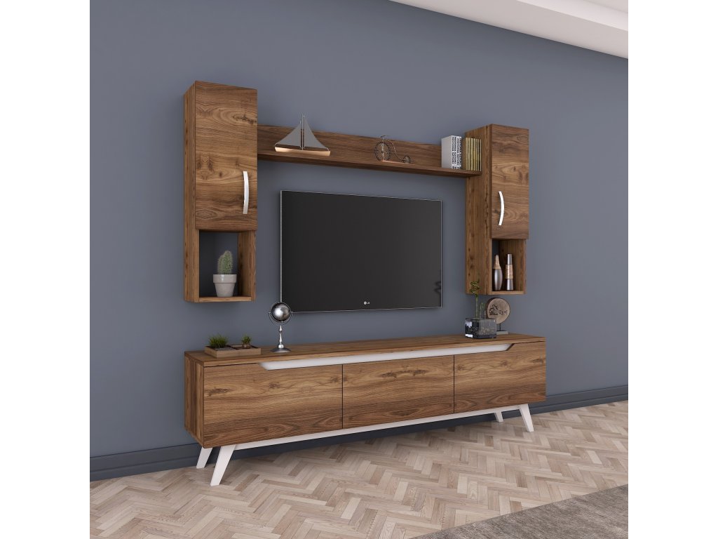 Obývacia stena ROCKET je dokonalou voľbou pre modernú obývaciu izbu. Kombinuje elegantný dizajn v bielej farbe s dekoratívnym orechom, čím dodáva priestoru štýl a útulnosť. Vďaka praktickému usporiadaniu ponúka dostatok úložného priestoru a funkčnosť.