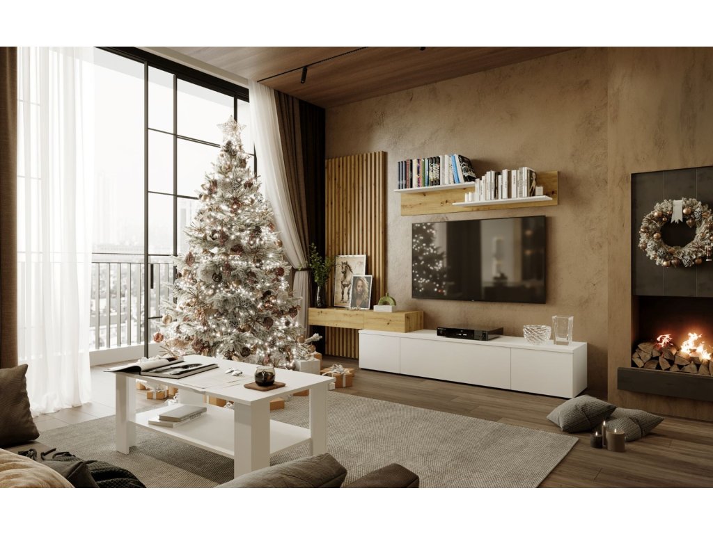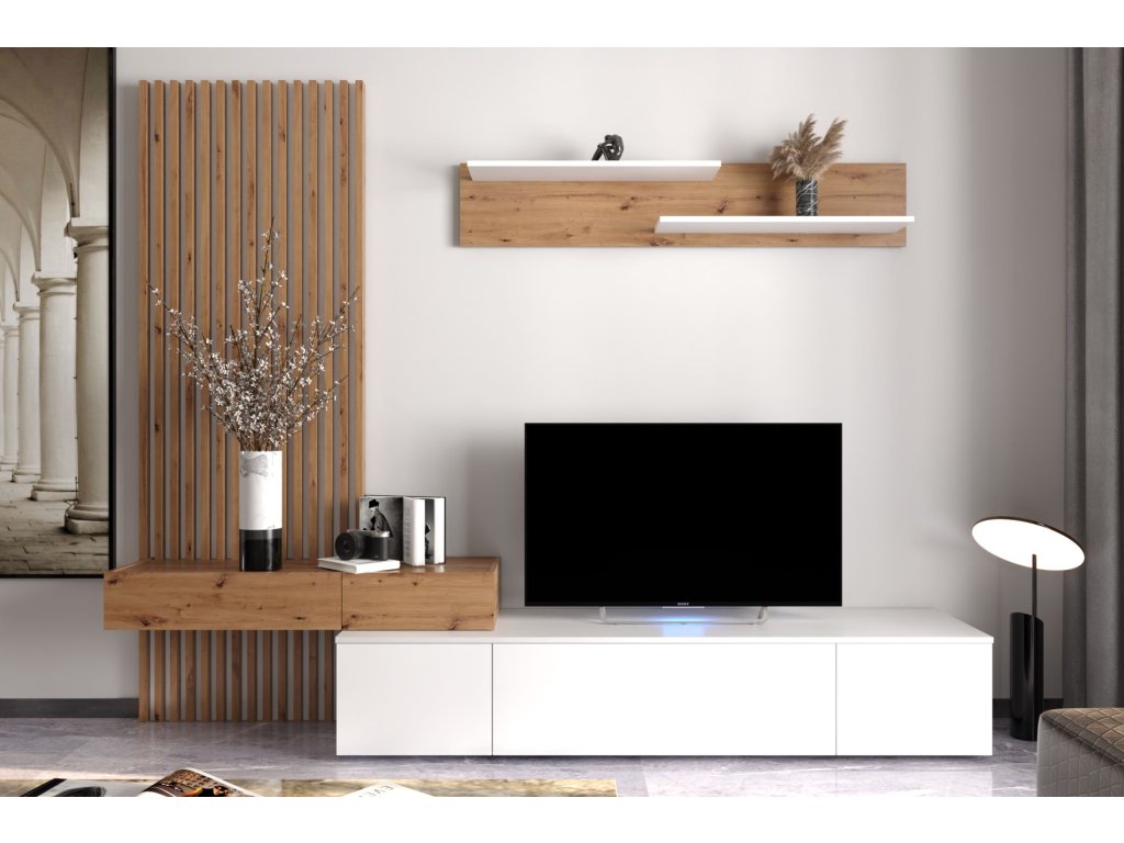 Obývacia stena SOWETO PLUS, biela / dub Artisan