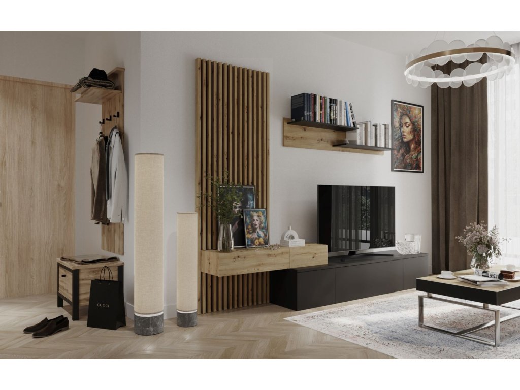 Obývacia stena SOWETO PLUS, čierna / dub Artisan