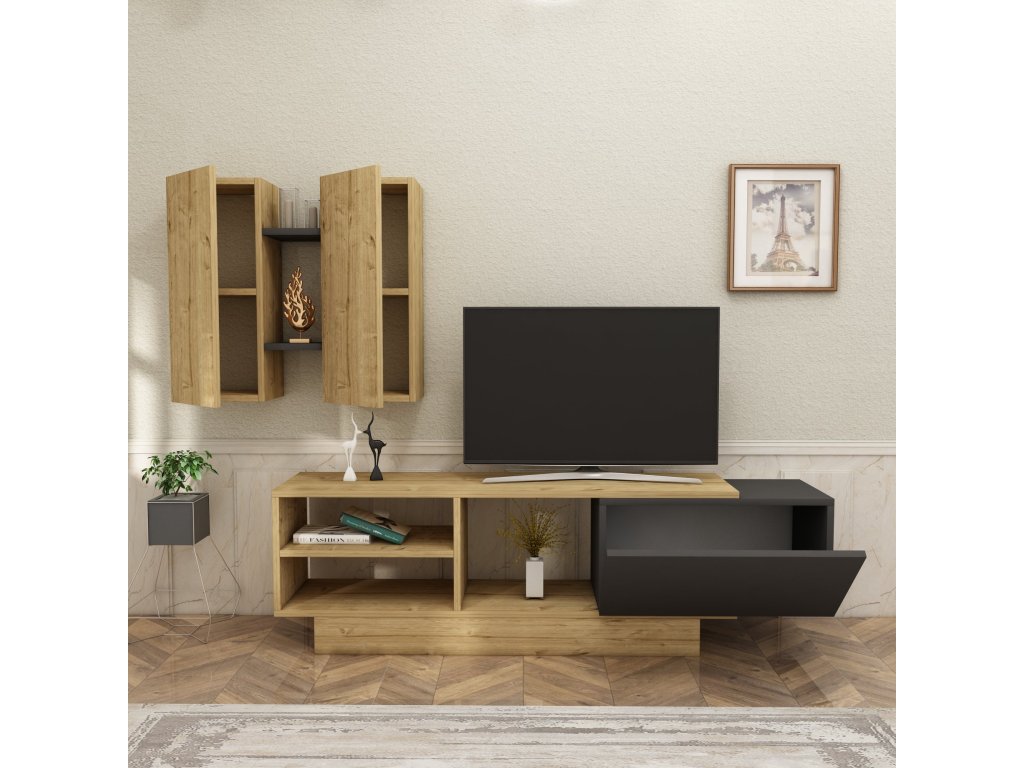 | Zostava obsahuje: | Televízny stolík 140x31,6x43,6 cm, nástenná skrinka 64,5x24,1x60 cm |