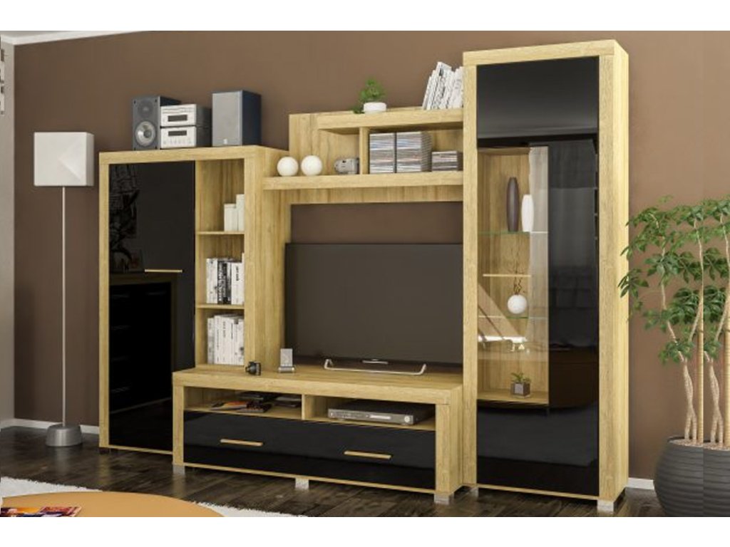 Obývacia zostava LILU, dub zlatý/čierny lesk