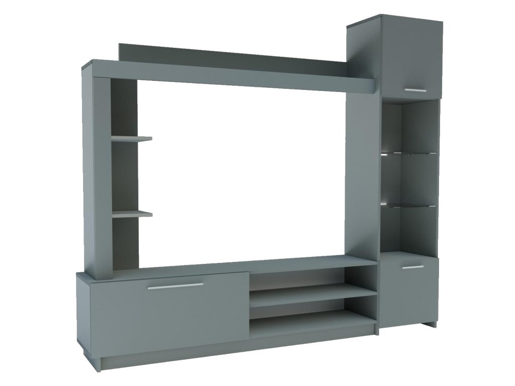 | Zostava obsahuje: | Vitrína, regál, závesná polica, televízny stolík. |