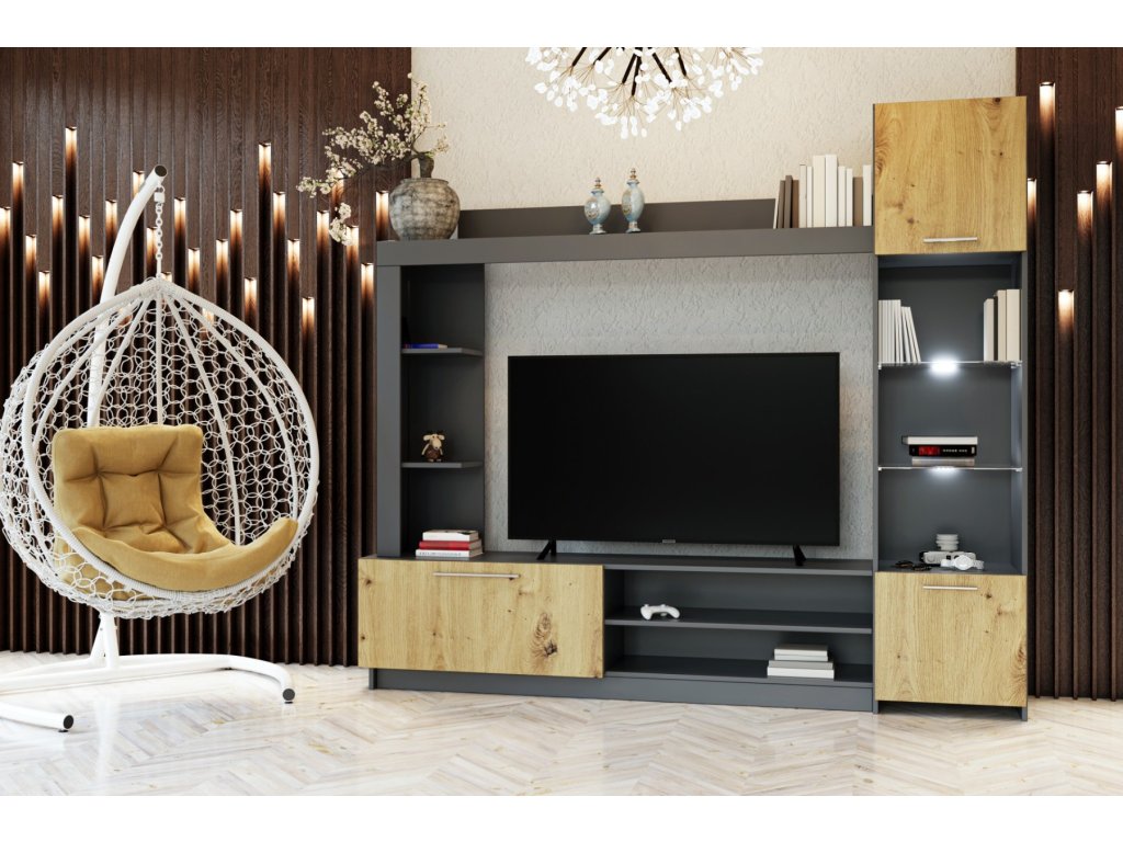Obývacia stena LUXURY je v dizajnovom a atraktívnom farebnom prevedení dub Artisan / grafit.