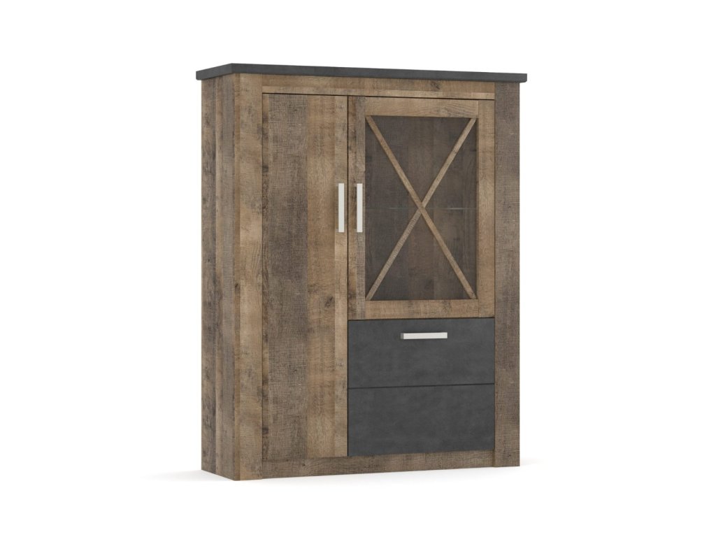 dvojdverovú komodu s vitrínou (ŠxVxH): 114 x 142 x 38 cm