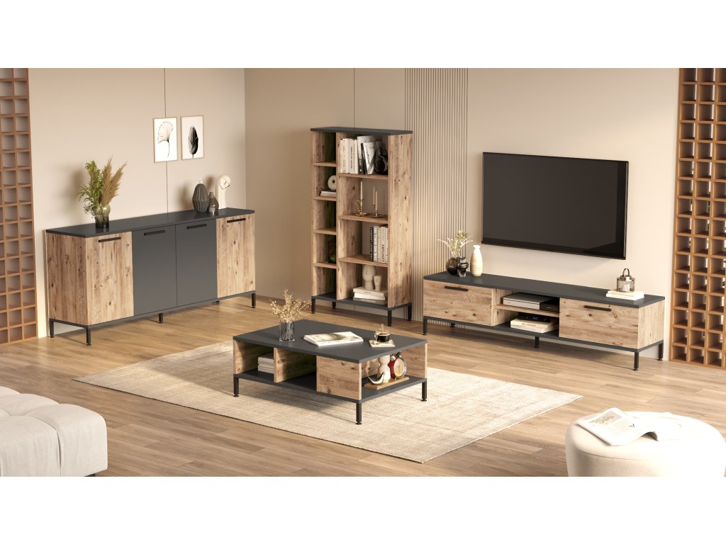 Obývacia zostava RELLY 6, borovica/antracit