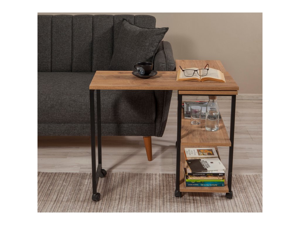 Či už potrebujete nočný stolík, konferenčný stolík alebo praktické úložné riešenie do obývacej izby, tento všestranný odkladací stolík vám pomôže. Jeho kompaktné rozmery a kolieskové nohy uľahčujú premiestňovanie a umožňujú vám bez námahy premeniť akýkoľvek priestor podľa vašich potrieb. Farebná kombinácia atlantskej borovice a čiernej dodá každému interiéru nádych sofistikovanosti. mm