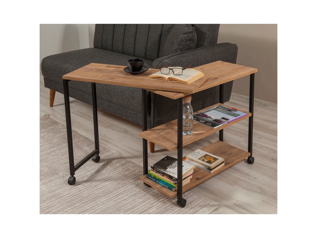 Odkladací stolík na kolieskach PADLE, borovica Atlantik / čierna