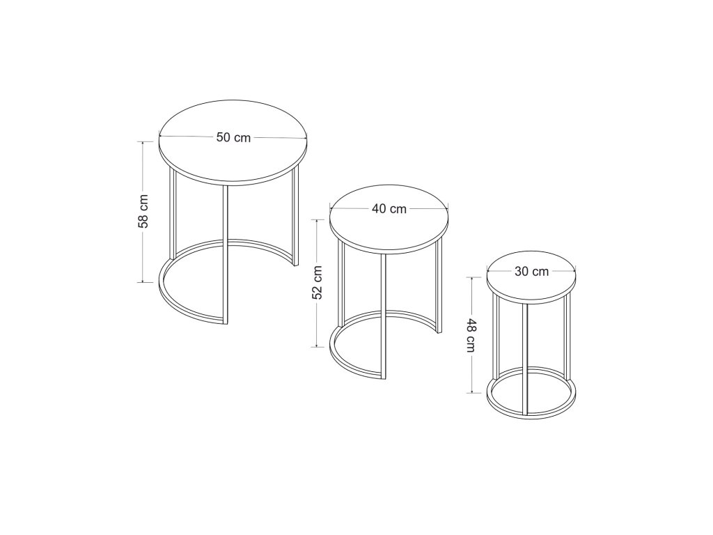Táto sada vkladacích stolíkov, vyrobená s precíznosťou a eleganciou, je perfektným doplnkom každého moderného alebo súčasného priestoru. Jej elegantný a minimalistický dizajn bez námahy doplní akýkoľvek dekor a okamžite pozdvihne vizuálnu atraktivitu vašej miestnosti.