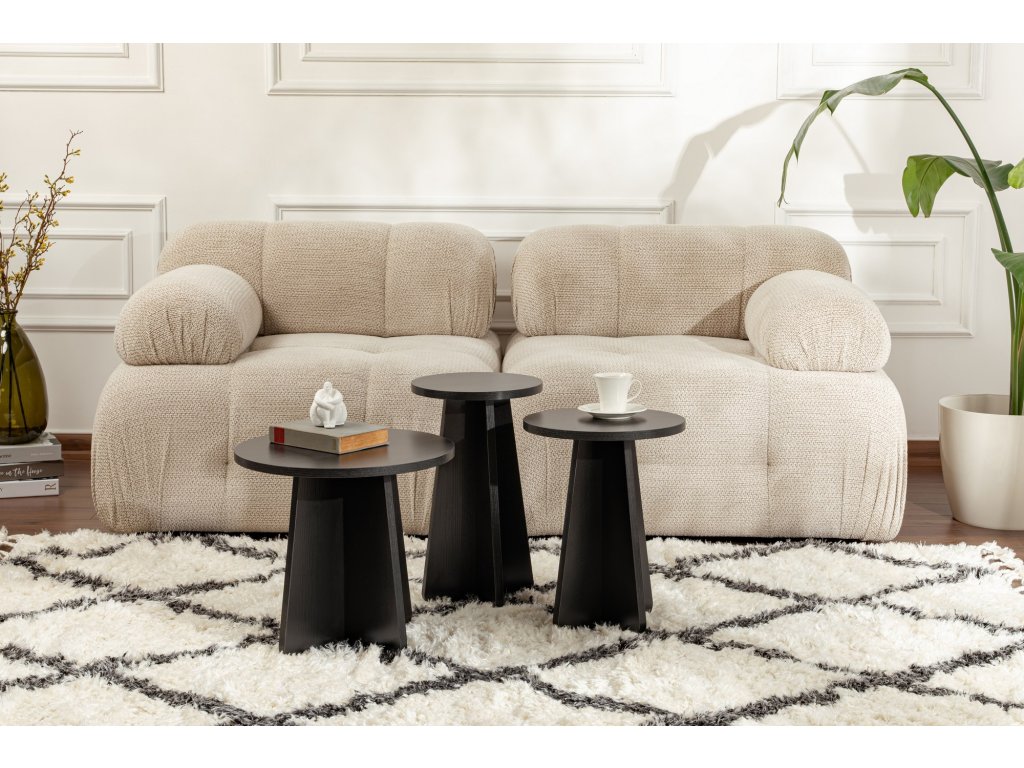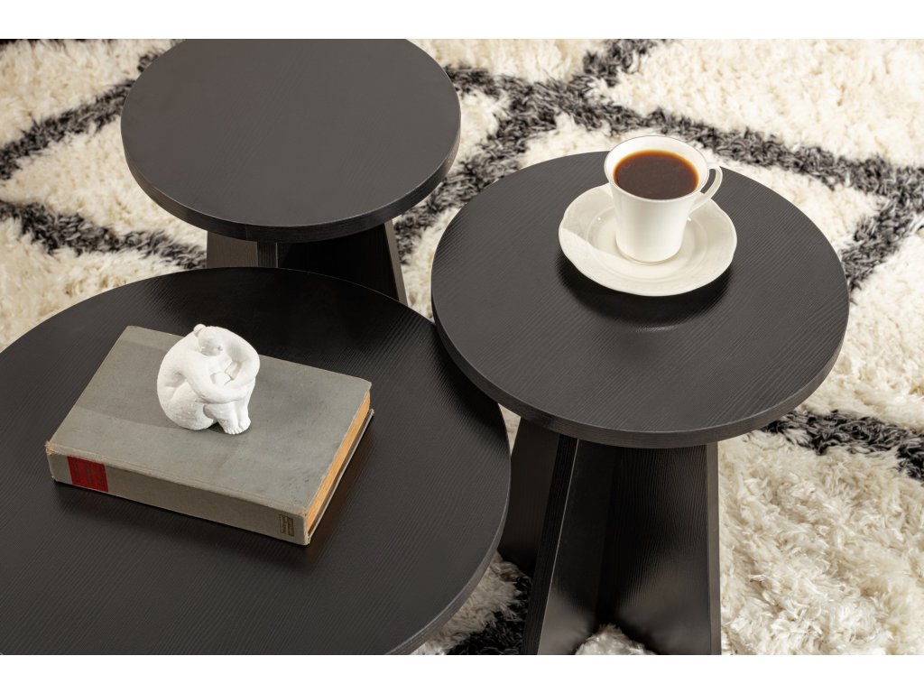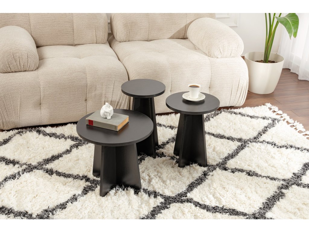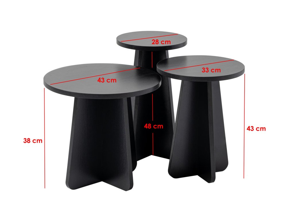 Tieto stolíky sú vyrobené zo 100% drevotriesky s melamínovým povlakom a sú navrhnuté tak, aby vydržali. Hrúbka 18 mm zaisťuje odolnosť a stabilitu, zatiaľ čo čierna farba dreva dodáva každej miestnosti nádych sofistikovanosti.