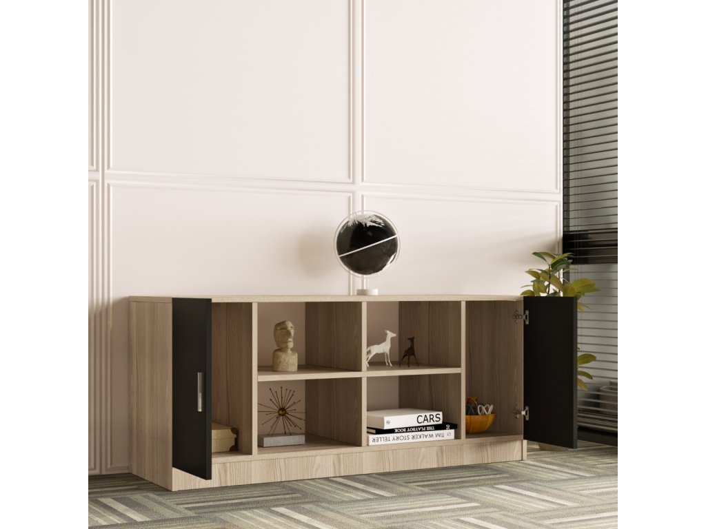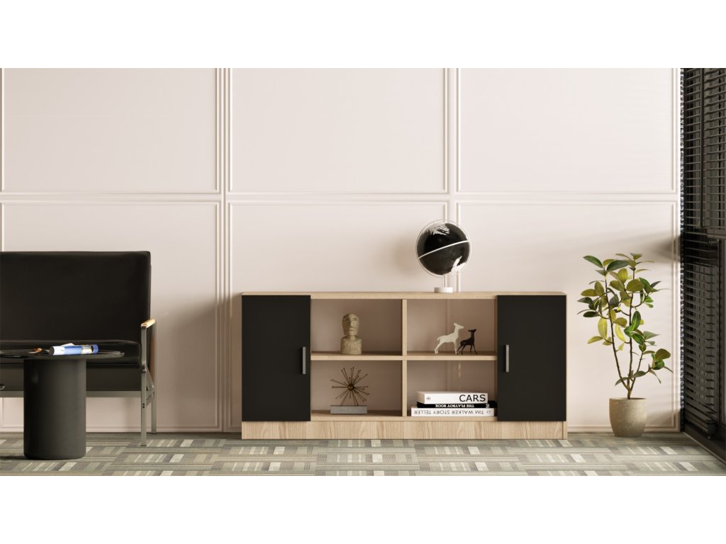 S jej rozmermi 61.8 x 139.8 x 46.3 cm máte dostatok úložného priestoru pre vaše dokumenty, knihy a ďalšie potrebné veci. Kombinácia dvoch farieb, duba a čiernej, dodáva komode VARIO 6 moderný a elegantný vzhľad, ktorý sa hodí do každého pracovného prostredia.