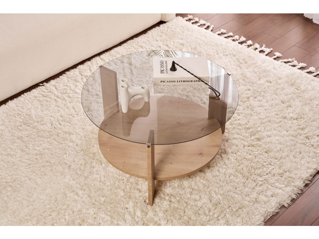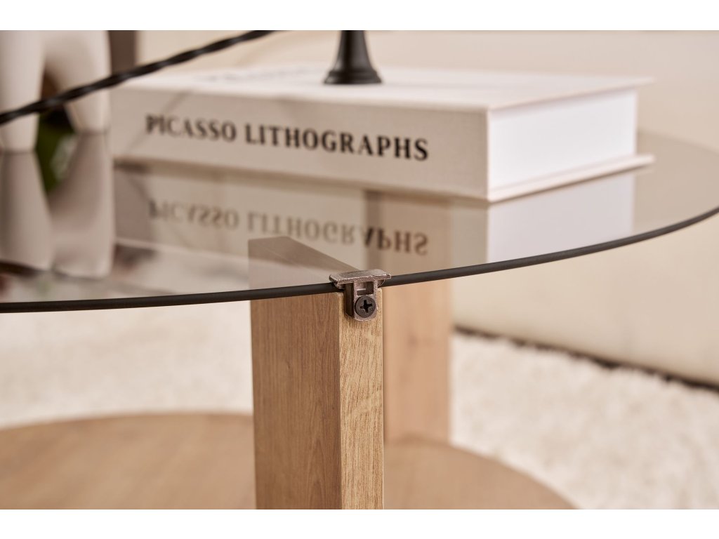 Okrúhly konferenčný stolík ONLY, dub Sapphire / dymové sklo