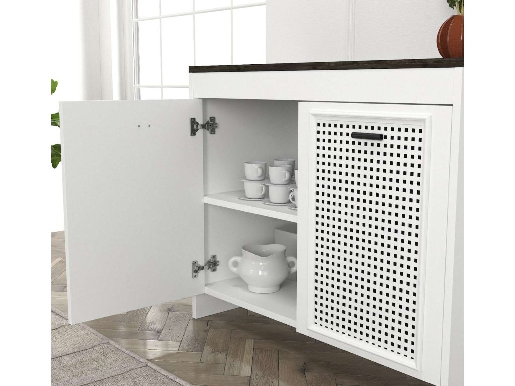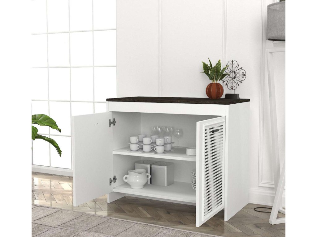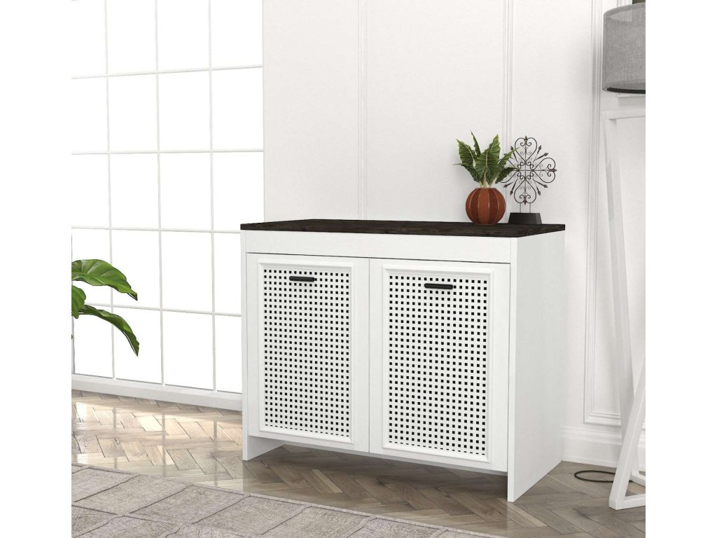 Komoda CANCEL 90 je vyrobená z kvalitného LTD materiálu s hrúbkou 18 mm, čo zaisťuje jej pevnosť a dlhú životnosť. Elegantná kombinácia bielej a tmavo hnedej farby dodáva komode luxusný a sofistikovaný vzhľad, ktorý sa hodí do akéhokoľvek interiéru. Komoda je vybavená dvoma dvierkami, ktoré poskytujú dostatok úložného priestoru pre vaše potreby.