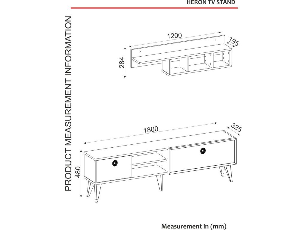 - Rozmery: TV stolík (180 x 33 x 48 cm) a nástenná polica (120 x 19,5 x 28,4 cm), poskytujúca efektívne úložné riešenie a zároveň esteticky pôsobivé zobrazenie vašich obľúbených dekorácií alebo multimediálnych zariadení.