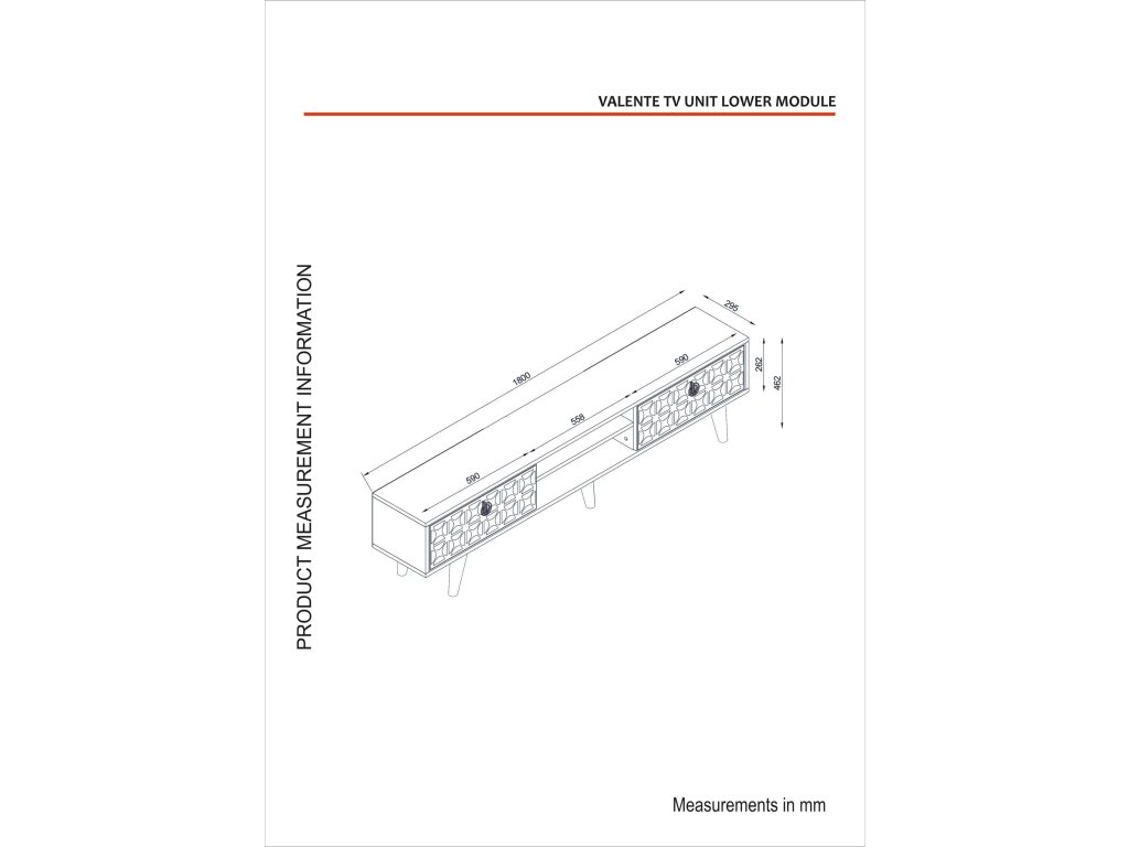 - Rozmery: 180 x 46.2 x 29.5 cm, ideálny pre moderné obývacie izby, poskytuje dostatočný priestor na umiestnenie televíznej obrazovky a ďalšieho vybavenia.