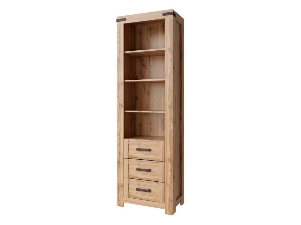 Zvýraznite dizajn vašej obývačky alebo jedálne s úzkym regálom MARIETTA v elegantnom štýle. Regál ponúka kombináciu praktického úložného priestoru a možnosti vystavenia dekorácií. Obsahuje tri praktické zásuvky a regál s policami - ideálny pre porcelán, knihy alebo upomienkové predmety.