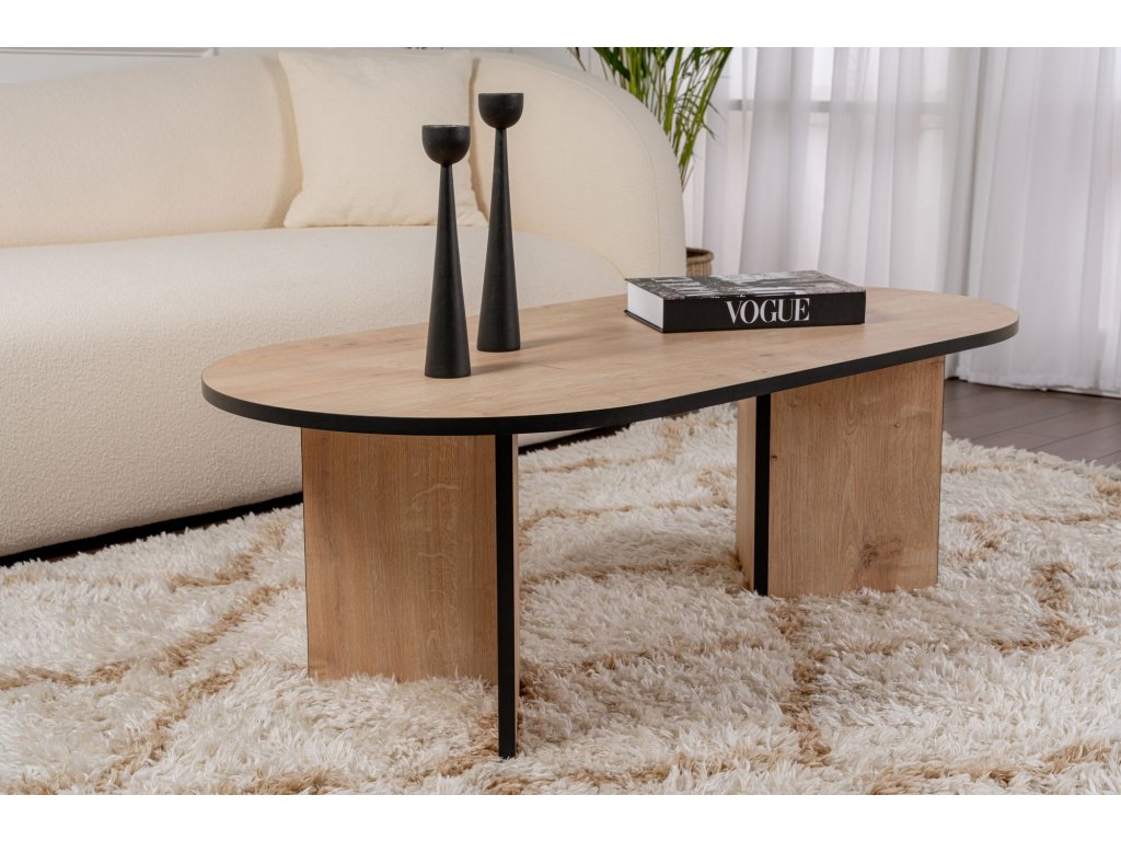 Oválny konferenčný stolík LAB, dub Sapphire / čierna