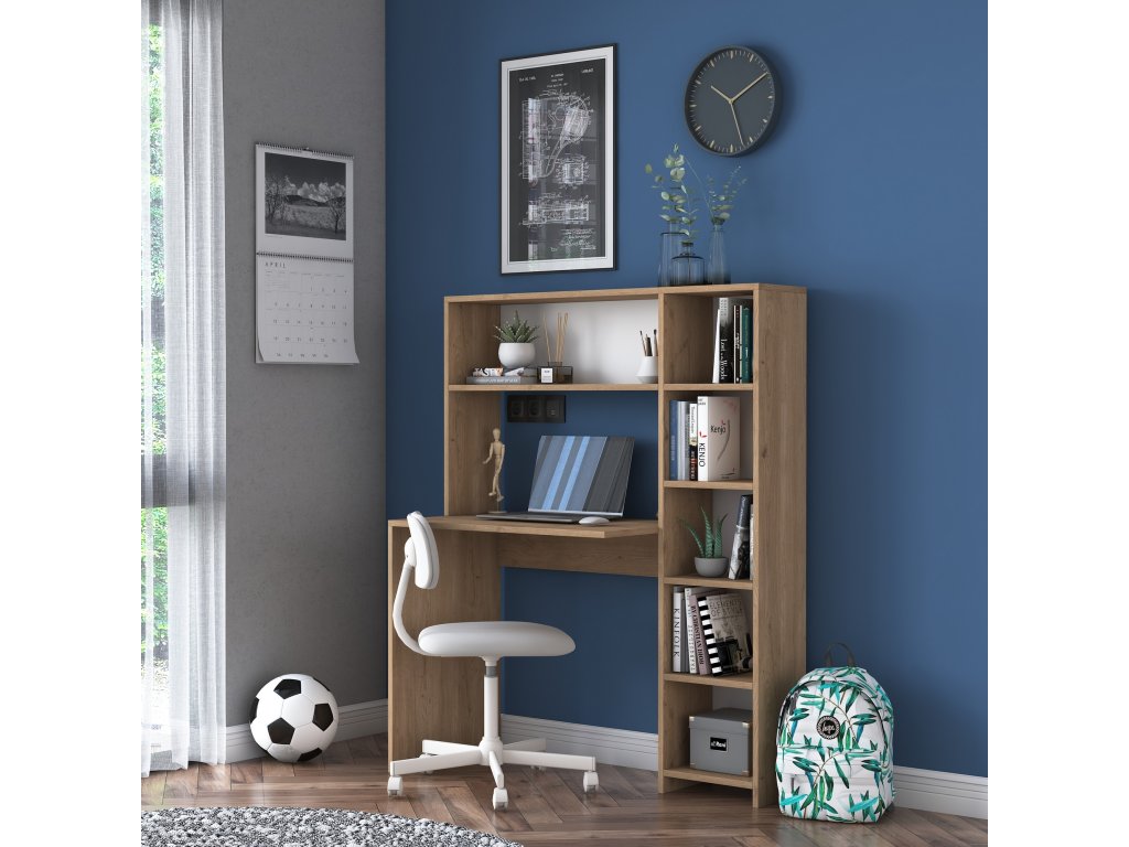 Písací stôl s regálom HALIEN je skvelým riešením pre detskú izbu, kanceláriu alebo pracovňu. Kombinuje funkčnosť s moderným dizajnom v dekore duba a poskytuje dostatok priestoru pre prácu aj úložné možnosti.