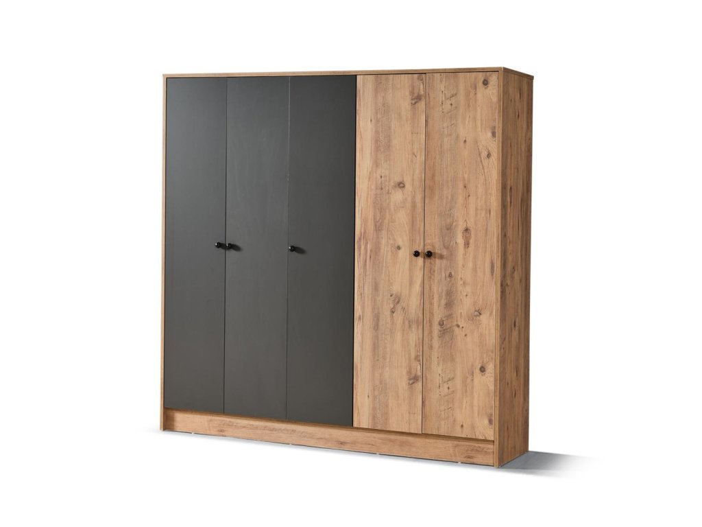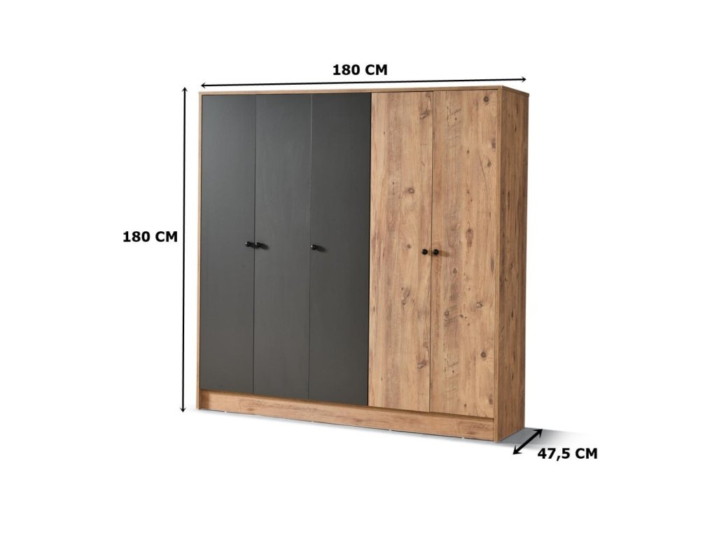 Predstavujeme vám päťdverovú šatníkovú skriňu VIDA v elegantnej kombinácii antracitu a borovice. Táto štýlová skriňa dokonale doplní váš interiér a poskytne vám dostatok úložného priestoru.