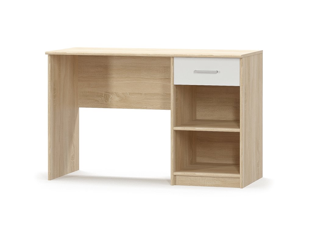 Písací stôl OLINO je výbornou voľbou pre Vašu detskú či študentskú izbu. Vyrobený je z kvalitnej LTD dosky vo farebnom prevedení dub Sonoma/biela matná, ktoré sa hodia do akéhokoľvek interiéru. Ponúka množstvo odkladacieho priestoru v podobe otvoreného regálu a jednej zásuvky. Rozmery stola: (š/v/h) 120 x 77 x 54 cm.
