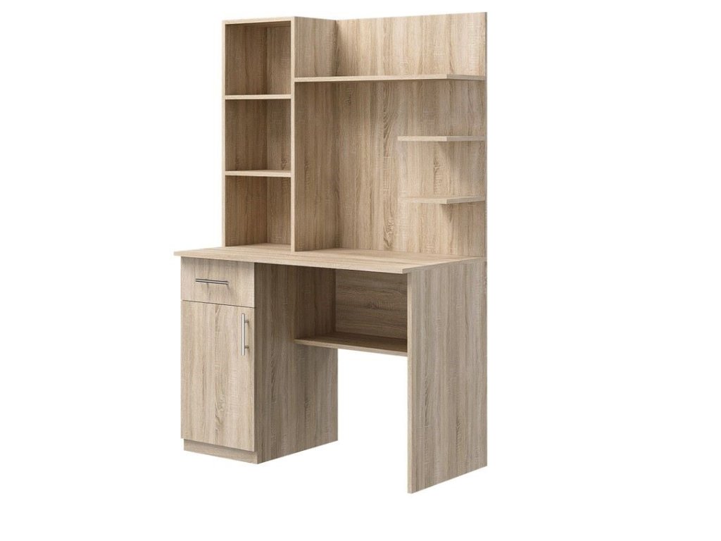 V hornej nadstavbe je regál a tri odkladacie police. V spodnej časti je skrinka so zásuvkou, pod písacou plochou je ďalšia odkladacia polica.