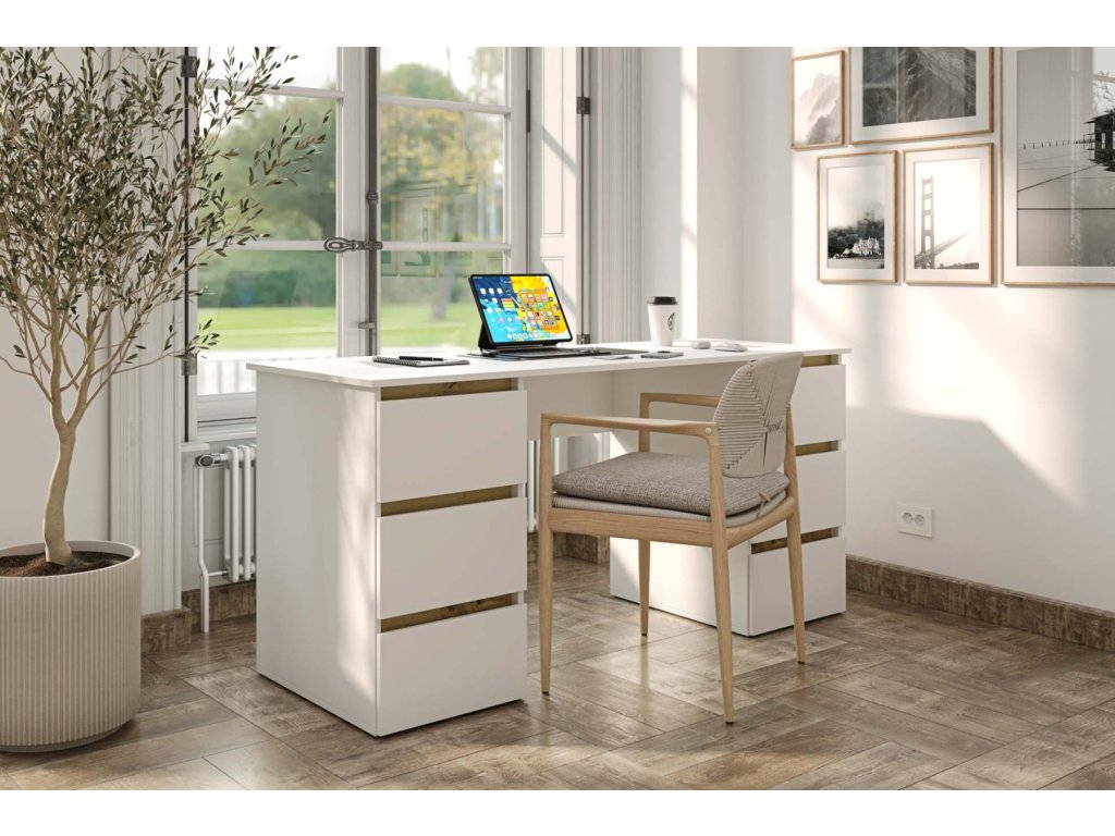 Široký písací stôl SONIJA je funkčný a moderný nábytok vhodný do každého interiéru. Písací stôl je vyrobený z LTD laminovaného materiálu. Farba biela matná dodáva pracovnému stolu príjemný a elegantný vzhľad. SONIJA písací stôl disponuje šiestimi praktickými šuplíkmi rozdelenými po oboch stranách.