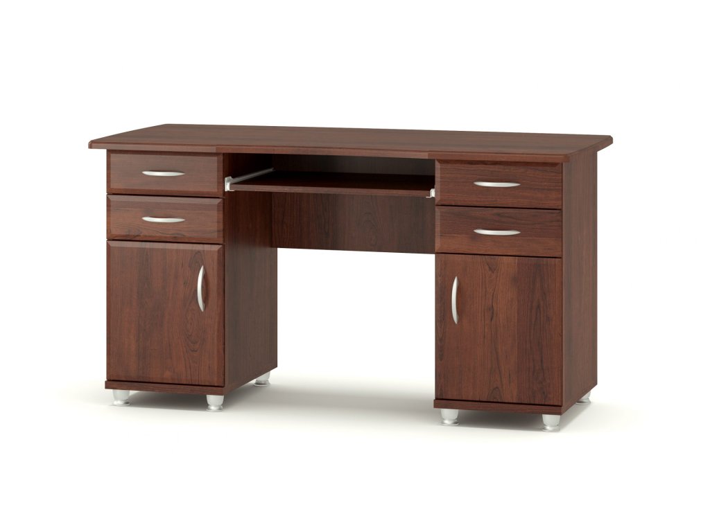 Ponúka množstvo odkladacieho priestoru v podobe dvoch zatvorených skriniek a štyroch zásuviek. Oceníte aj výsuvnú dósku na klávesnici.