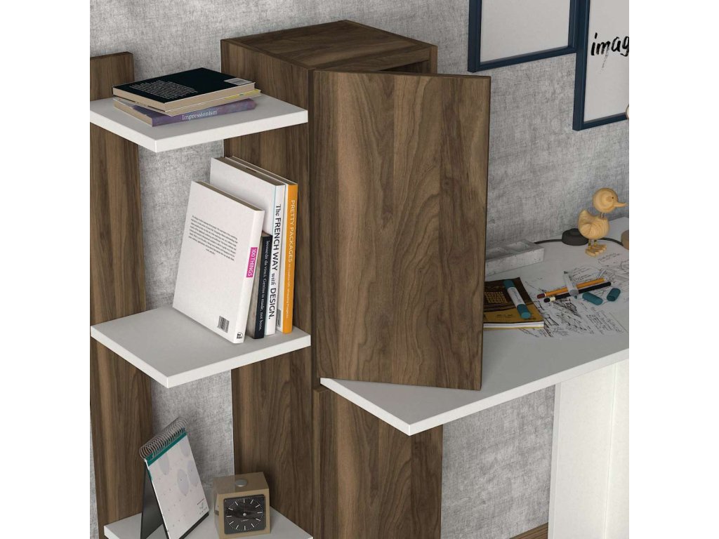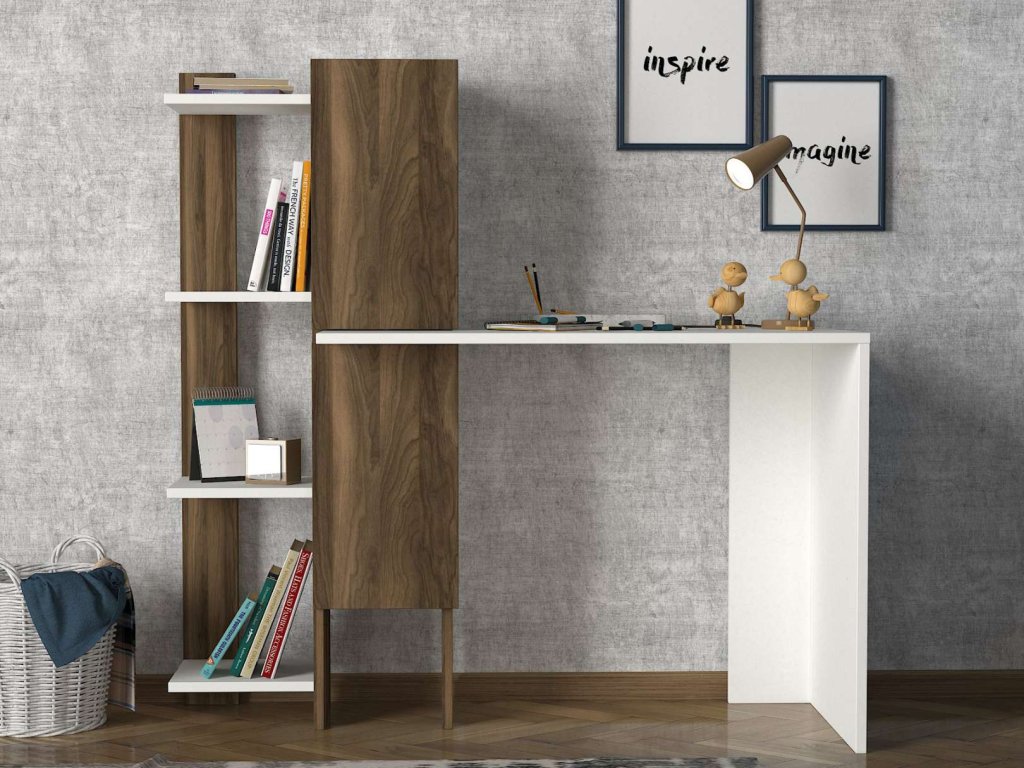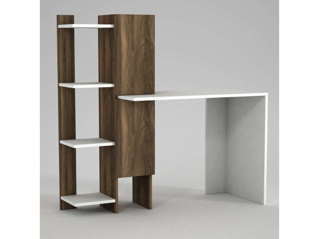 Písací stôl GIN je vyrobený z kvalitného LTD materiálu s hrúbkou 18 mm, čo zaisťuje jeho pevnosť a dlhú životnosť. Elegantná kombinácia bielej farby a orechového dekoru dodáva stolu moderný a štýlový vzhľad, ktorý sa hodí do akéhokoľvek interiéru. Stôl je vybavený praktickým regálkom, ktorý poskytuje dostatok úložného priestoru pre vaše pracovné potreby a pomôcky.