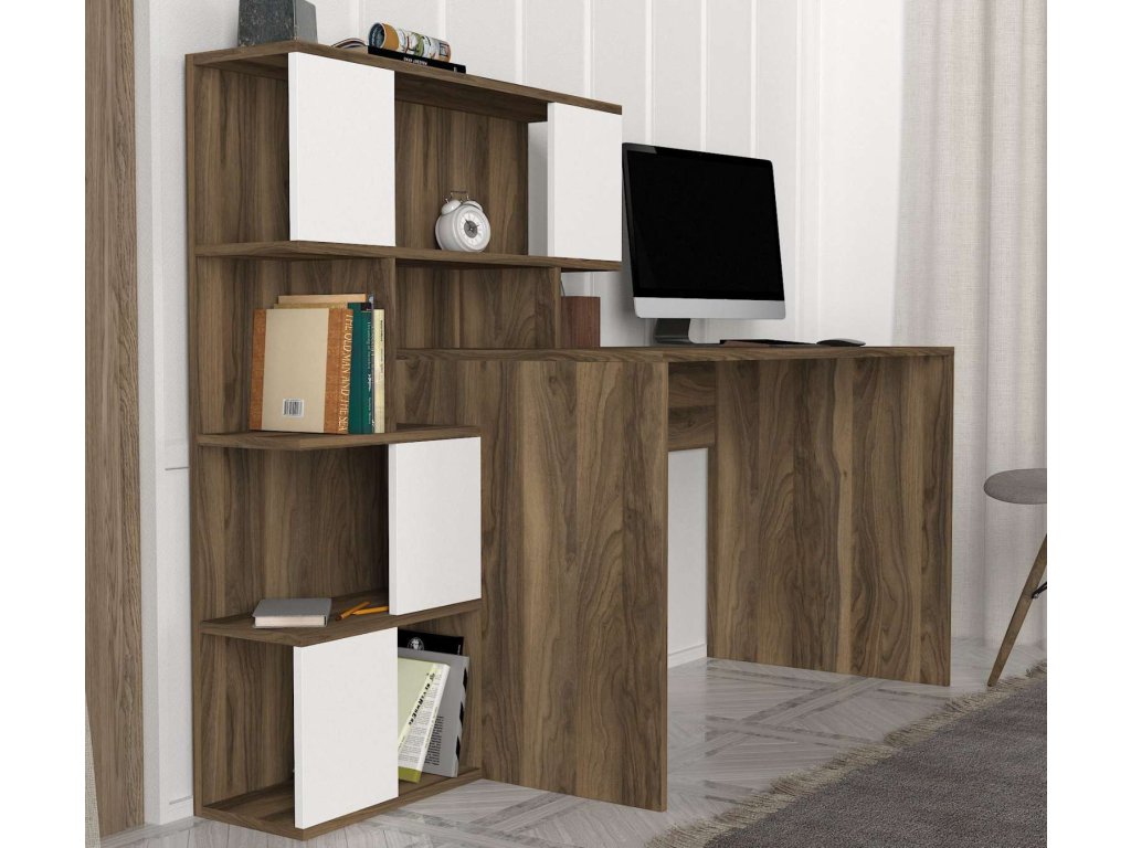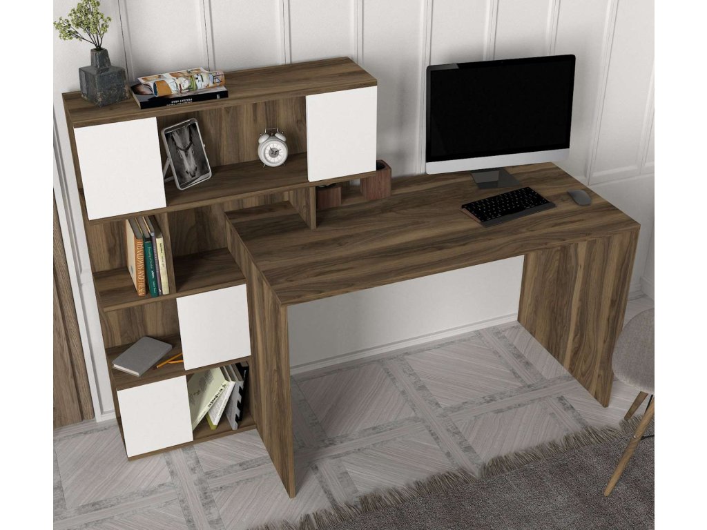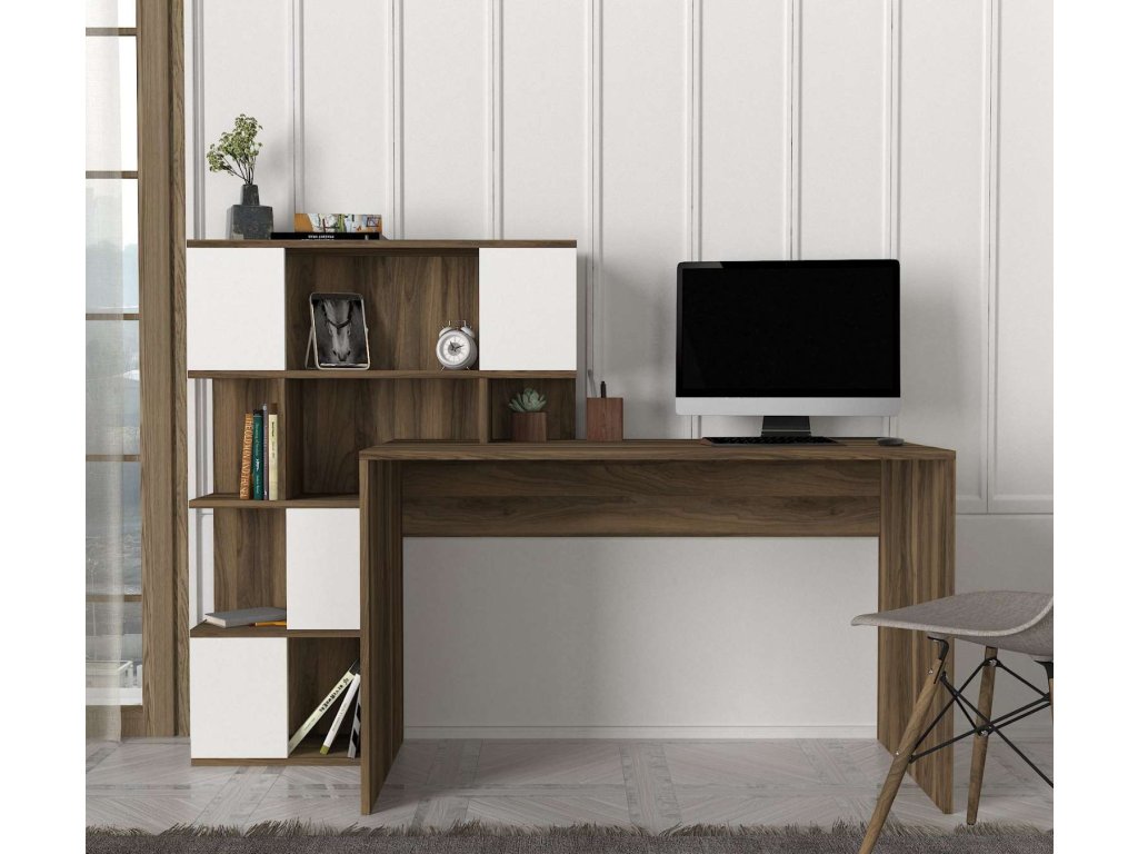 Písací stôl GLUTEN je vyrobený z kvalitného LTD materiálu s hrúbkou 18 mm, čo zaisťuje jeho pevnosť a dlhú životnosť. Elegantná kombinácia bielej a orechovej farby dodáva stolu moderný a štýlový vzhľad, ktorý sa hodí do akéhokoľvek interiéru. Stôl je vybavený praktickým regálkom, ktorý poskytuje dostatok úložného priestoru pre vaše pracovné potreby a pomôcky.