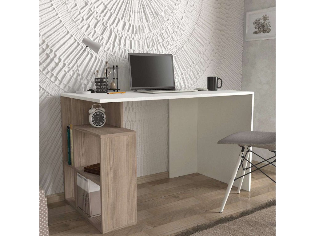 Písací stôl LEBRON je vyrobený z kvalitného LTD materiálu s hrúbkou 18 mm, čo zaisťuje jeho pevnosť a dlhú životnosť. Elegantná kombinácia bielej a svetlo hnedej farby dodáva stolu moderný a štýlový vzhľad, ktorý sa hodí do akéhokoľvek interiéru. Stôl je vybavený praktickým regálkom, ktorý poskytuje dostatok úložného priestoru pre vaše pracovné potreby a pomôcky.