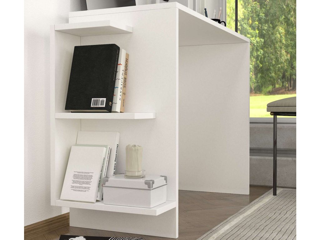 Písací stôl LINDA je vyrobený z kvalitného LTD materiálu s hrúbkou 18 mm, čo zaisťuje jeho pevnosť a dlhú životnosť. Elegantný biely dizajn dodáva stolu moderný a čistý vzhľad, ktorý sa hodí do akéhokoľvek interiéru. Stôl je vybavený praktickým regálkom, ktorý poskytuje dostatok úložného priestoru pre vaše pracovné potreby a pomôcky.
