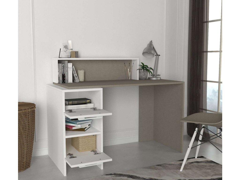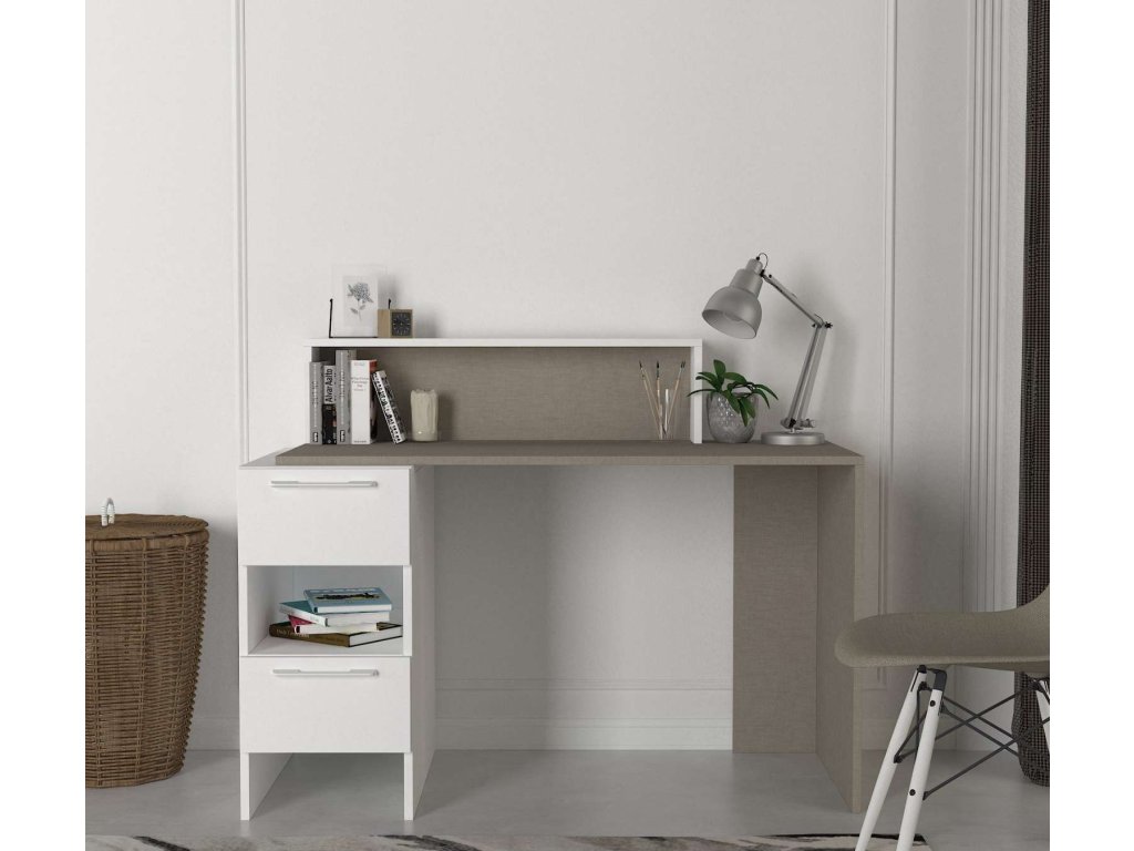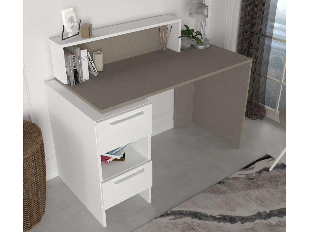 Písací stôl MIKA je vyrobený z kvalitného LTD materiálu s hrúbkou 18 mm, čo zaisťuje jeho pevnosť a dlhú životnosť. Elegantná kombinácia bielej a béžovej farby dodáva stolu moderný a štýlový vzhľad, ktorý sa hodí do akéhokoľvek interiéru. Stôl je vybavený praktickým regálkom, ktorý poskytuje dostatok úložného priestoru pre vaše pracovné potreby a pomôcky.