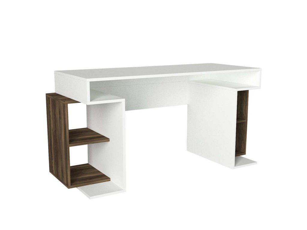 Písací stôl MOMENT je vyrobený z kvalitného LTD materiálu s hrúbkou 18 mm, čo zaisťuje jeho pevnosť a dlhú životnosť. Elegantná kombinácia bielej farby a orechového dekoru dodáva stolu moderný a štýlový vzhľad, ktorý sa hodí do akéhokoľvek interiéru. Stôl je vybavený praktickým regálkom, ktorý poskytuje dostatok úložného priestoru pre vaše pracovné potreby a pomôcky.