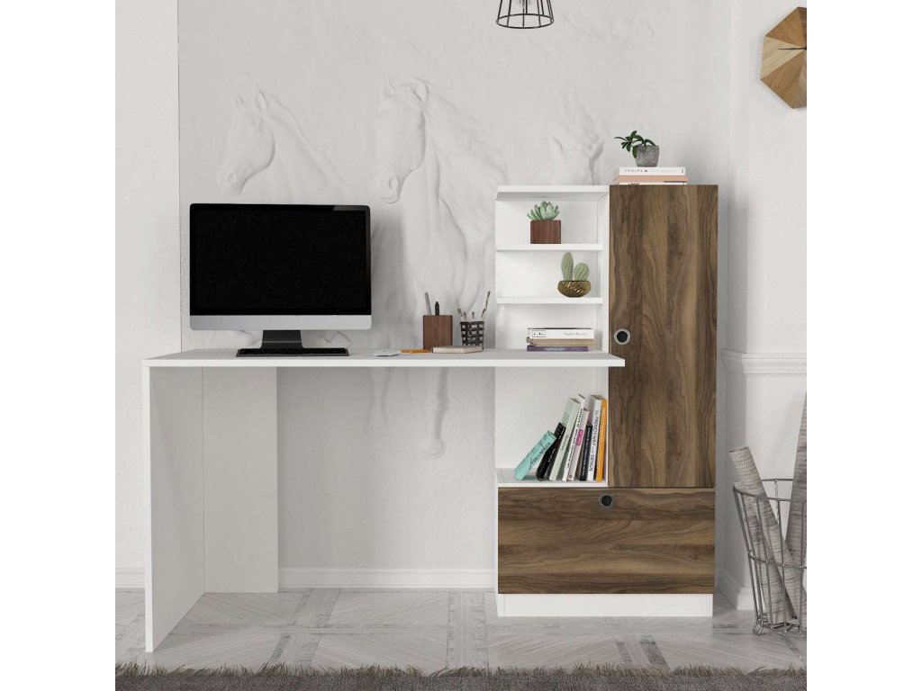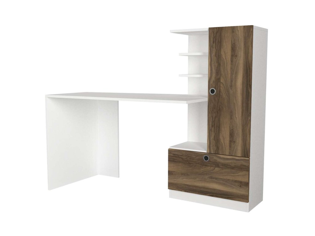 Stôl RHINOS je vyrobený z kvalitného LTD materiálu s hrúbkou 18 mm, čo zaisťuje jeho pevnosť a dlhú životnosť. Elegantná kombinácia bielej farby a orecha dodáva stolu moderný a štýlový vzhľad, ktorý sa hodí do akéhokoľvek interiéru. Praktická regálka poskytuje dostatok úložného priestoru pre vaše pracovné potreby a pomôcky.
