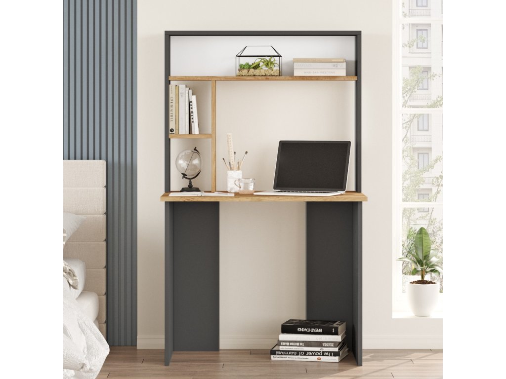 Písací stôl s nástavcom BREMEN, borovica / antracit