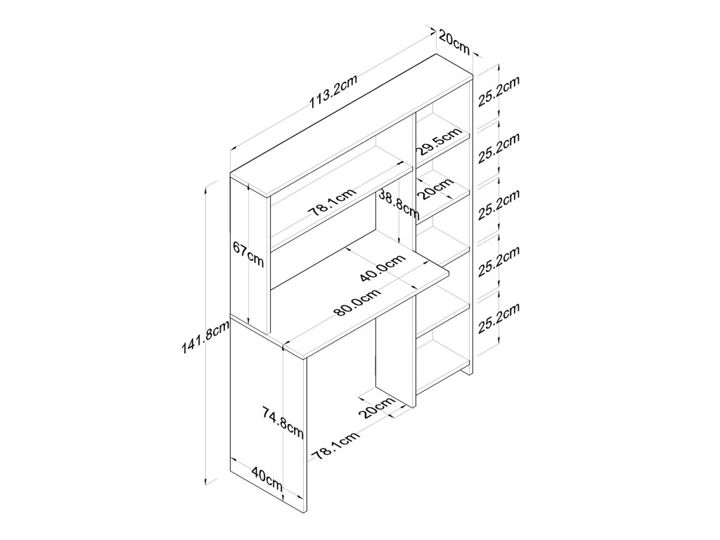 HALIEN ponúka dostatok pracovného priestoru, zatiaľ čo 5 políc poskytuje praktické úložné miesto pre knihy, školské potreby alebo kancelárske vybavenie. Jeho obdĺžnikový tvar a kompaktné rozmery ho robia skvelým doplnkom ako pre menšie, tak aj väčšie miestnosti. Kvalitný melamínový povrch zaisťuje ľahkú údržbu a dlhú životnosť.