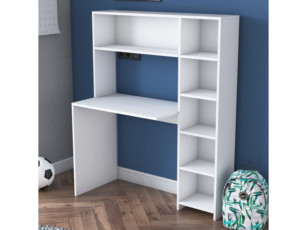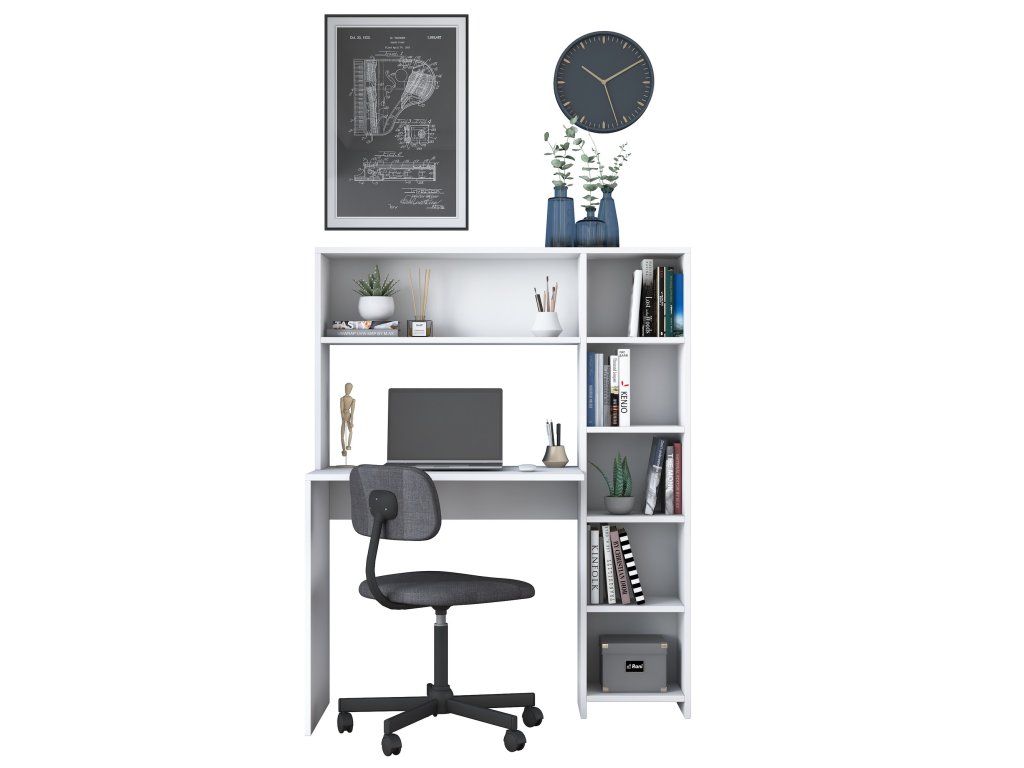 Písací stôl s regálom HALIEN, biela